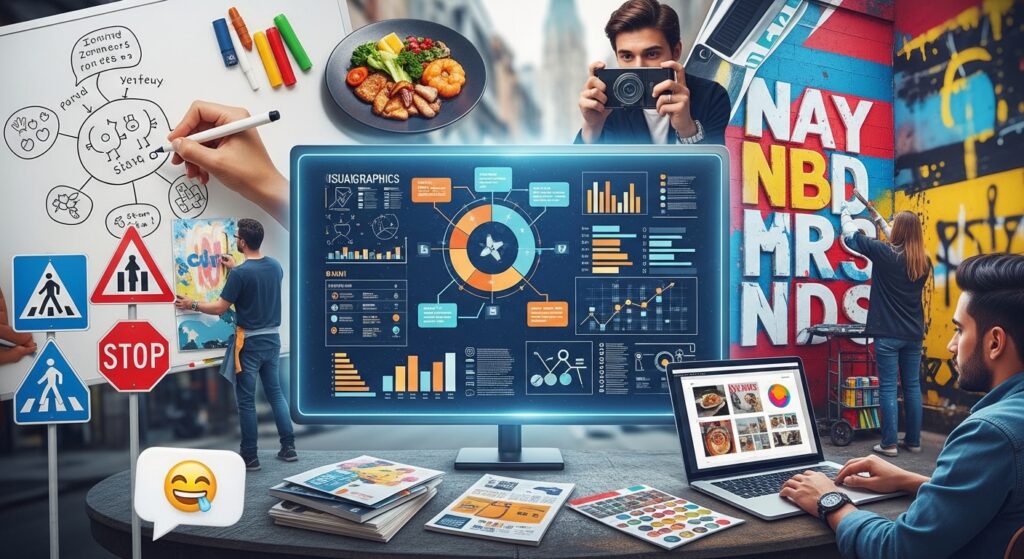 Students learn the fundamentals of typography, color theory, layout, composition, and branding. They work on real‑world projects like posters, logos, and social media creatives.